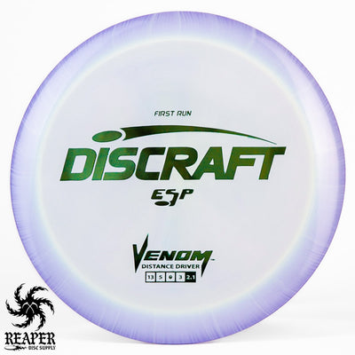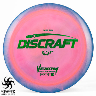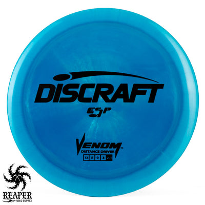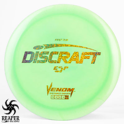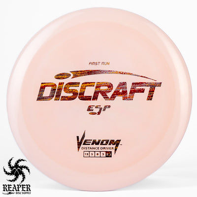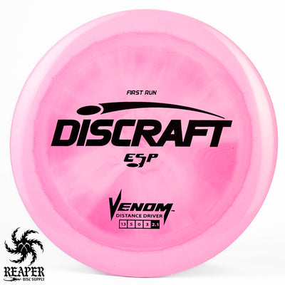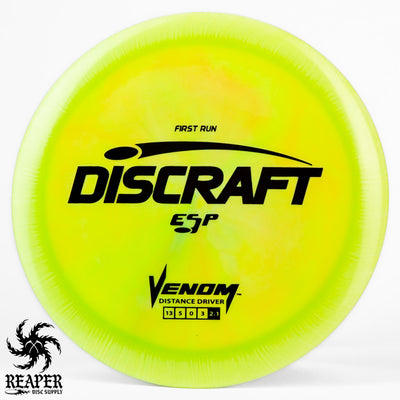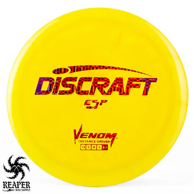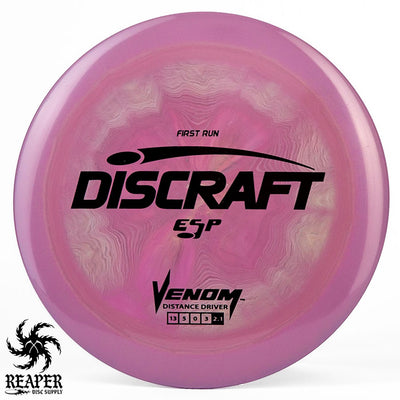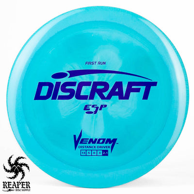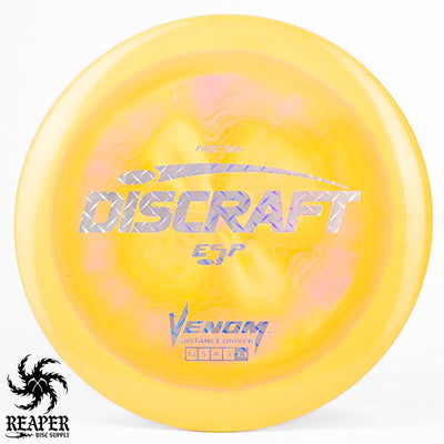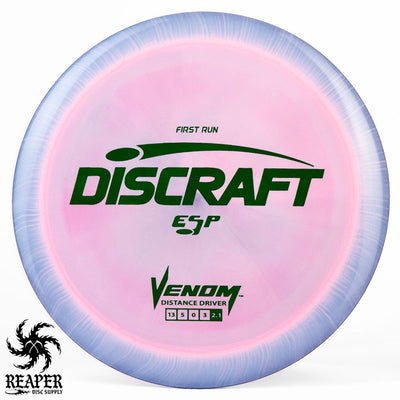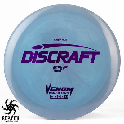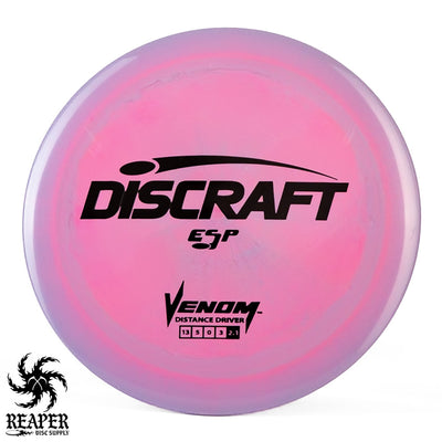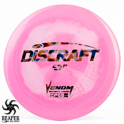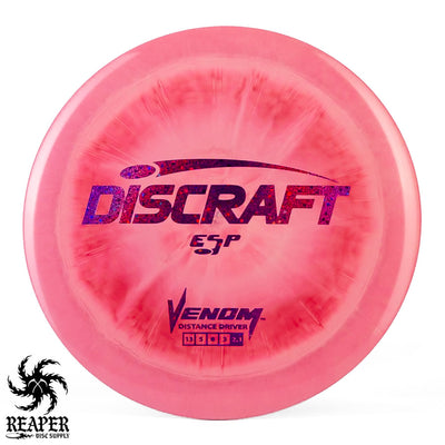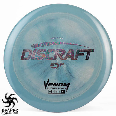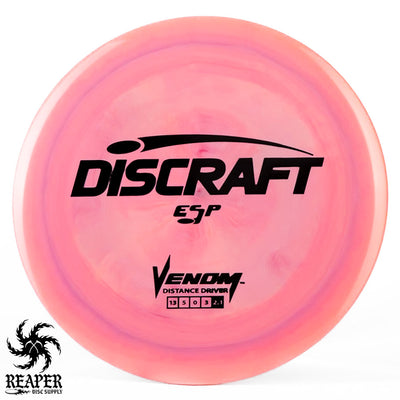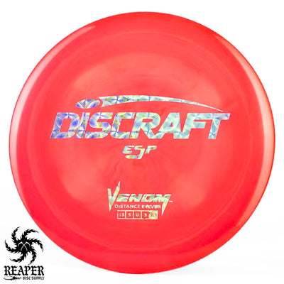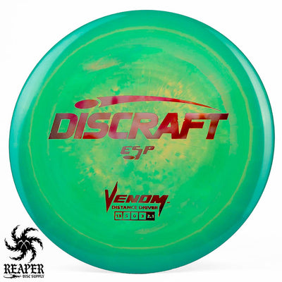 The new and improved Discraft Venom in ESP plastic is the overstable distance driver that you have been missing from your game. Made with Discraft's premium grade plastic, these ESP Venoms offer durability, lots of grip, and swirly awesomeness. If you are a max distance shredder then you're going to love this disc during windy rounds. It has enough stability to not turn over no matter how hard you throw it, and it cuts through the wind like a hot knife through butter. Live life on the dangerous side and give this Discraft Venom (ESP) the chance it deserves!