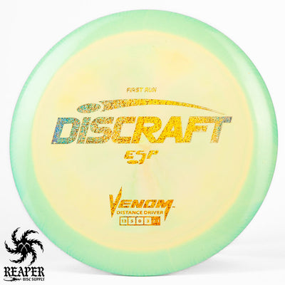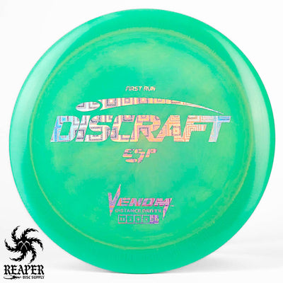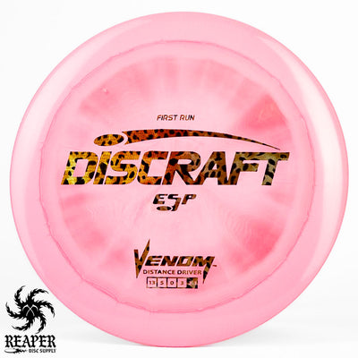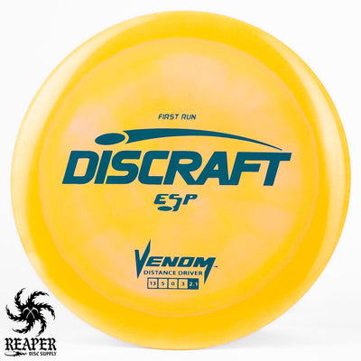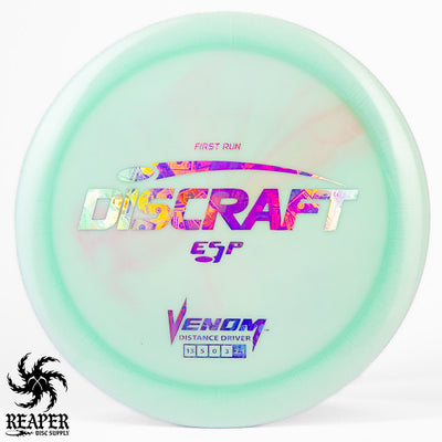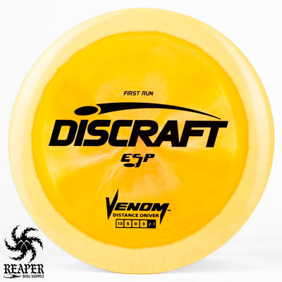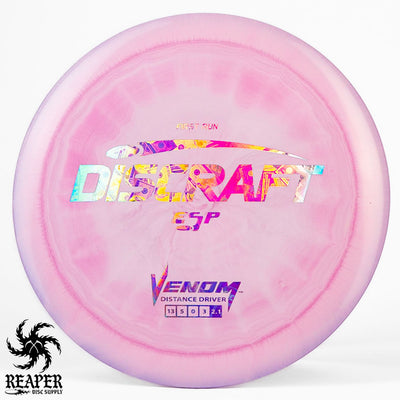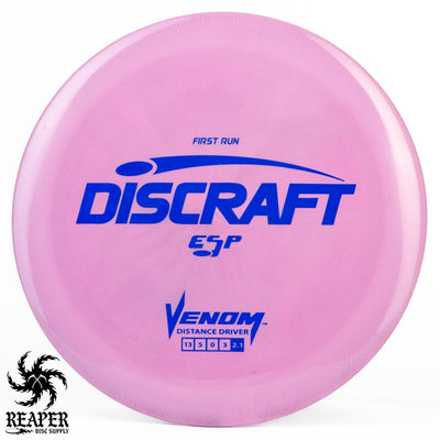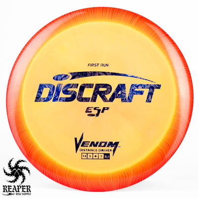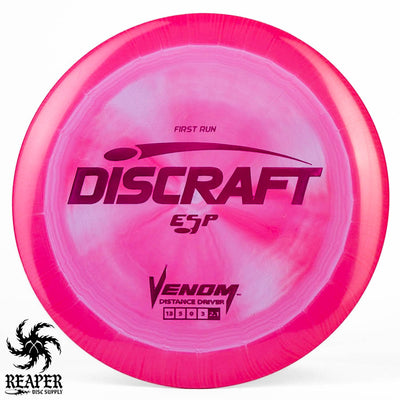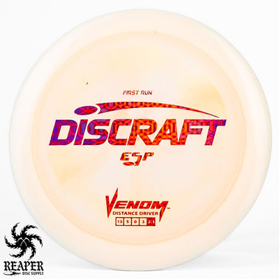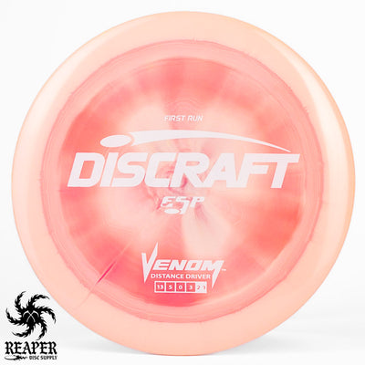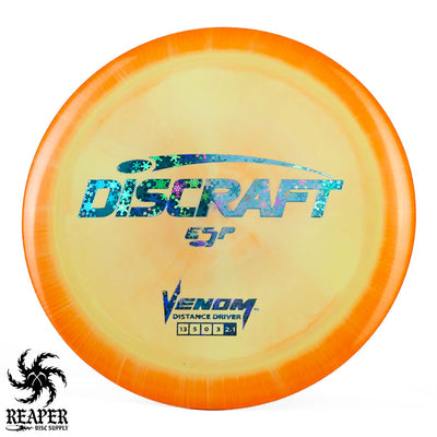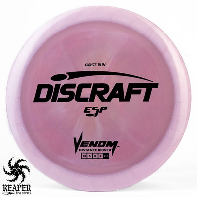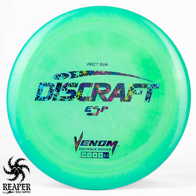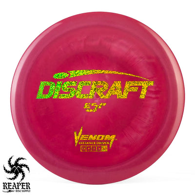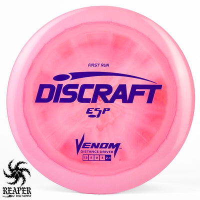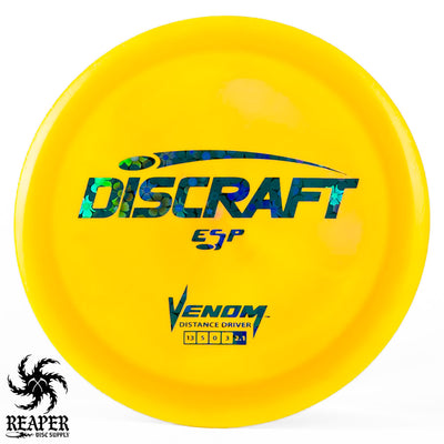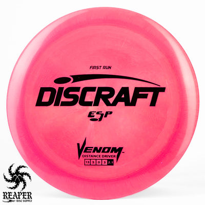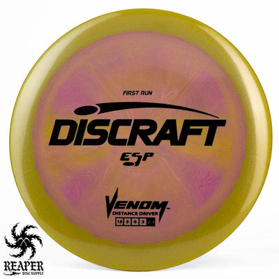 The new and improved Discraft Venom in ESP plastic is the overstable distance driver that you have been missing from your game. Made with Discraft's premium grade plastic, these ESP Venoms offer durability, lots of grip, and swirly awesomeness. If you are a max distance shredder then you're going to love this disc during windy rounds. It has enough stability to not turn over no matter how hard you throw it, and it cuts through the wind like a hot knife through butter. Live life on the dangerous side and give this Discraft Venom (ESP) the chance it deserves!