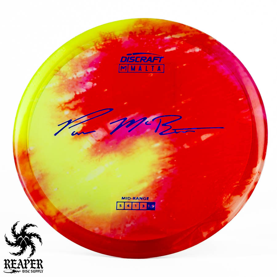 The Discraft Malta in Z Fly Dye plastic, part of Paul McBeth's signature line, is renowned for its superb control and versatility as a midrange disc. Crafted from durable Z Fly Dye plastic, it boasts a unique, colorful design and dependable grip. Suitable for players of all levels, the Malta excels in delivering consistent, accurate flights, making it perfect for precise approach shots and controlled midrange throws.