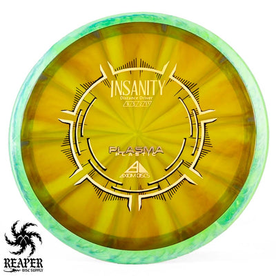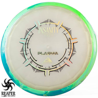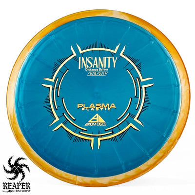 The Axiom Insanity Plasma is also available in durable Proton plastic. Find your next favorite disc here at Reaper!