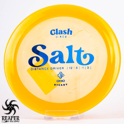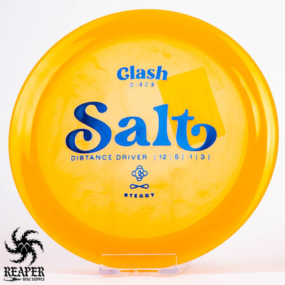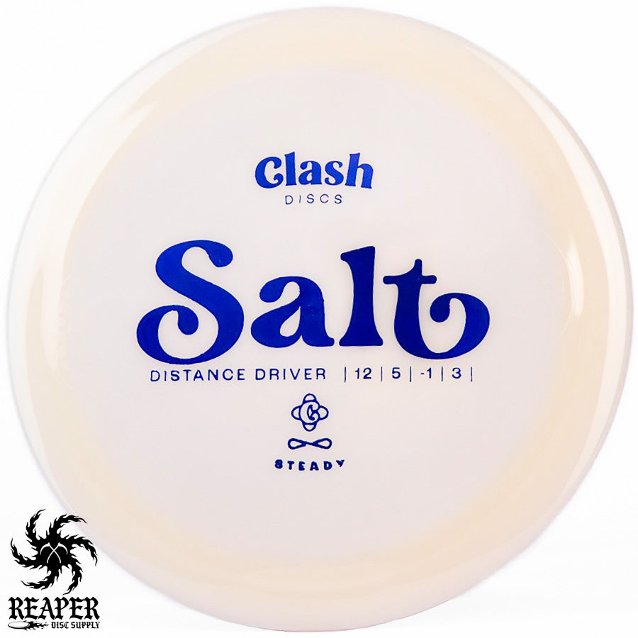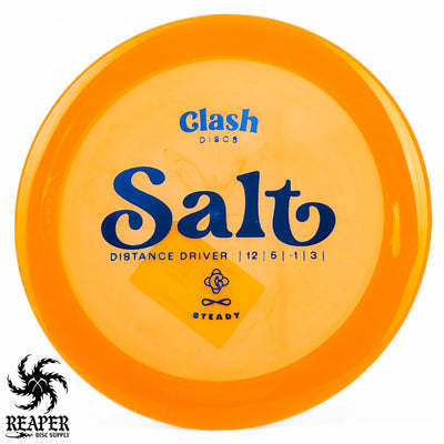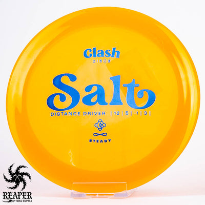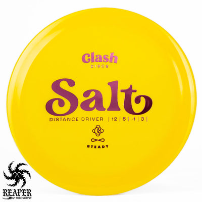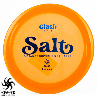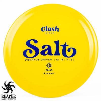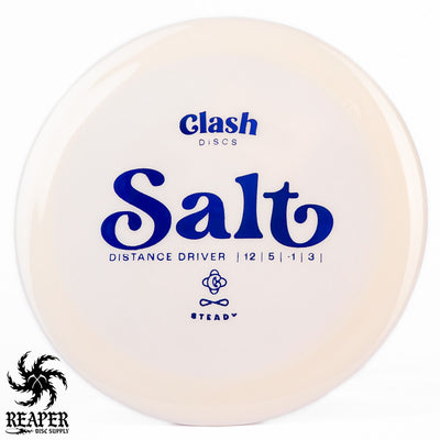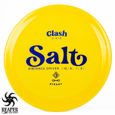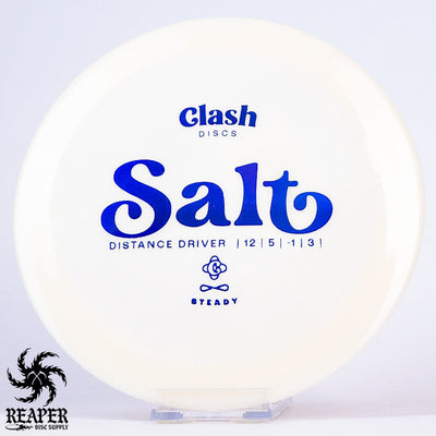 The Clash Discs Sale is an overstable disc golf distance driver that is highly reliable and made with premium Steady plastic. This workhorse driver flies similarly to a Destroyer or Nuke, and offers fantastic grip and durability. There's plenty of torque resistance to handle any amount of speed from forehand players, so don't be timid about hucking this disc as hard as you can down the fairway. If you need a dependable driver that feels great in the hand then give the Clash Discs Steady Salt a chance!