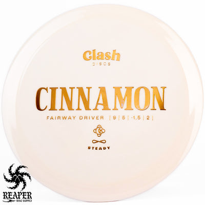 Introducing the Clash Discs Steady Cinnamon – a versatile and reliable disc golf driver that will take your game to the next level. With its smooth and consistent flight path, this disc is perfect for players of all skill levels. The Steady Cinnamon adds a touch of spice to your game, enhancing your throws and guiding you through wooded courses. Crafted from durable and flexible premium Steady plastic, it ensures a nice easy grip in all circumstances. Get ready to spice up your disc golf game with the Clash Discs Steady Cinnamon.
