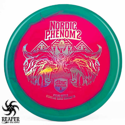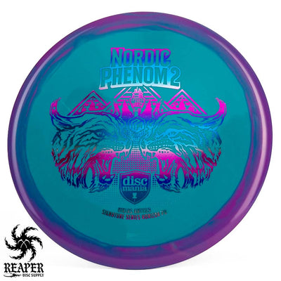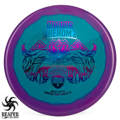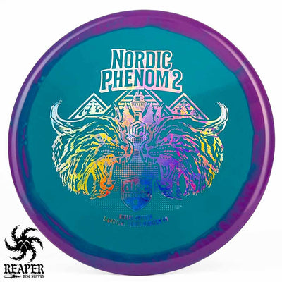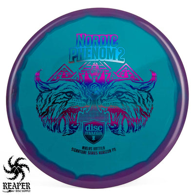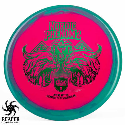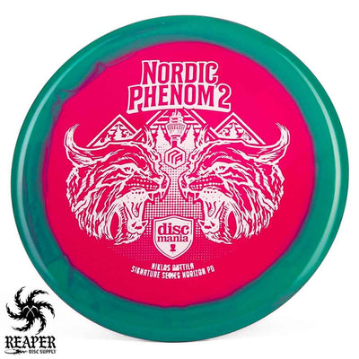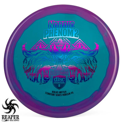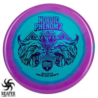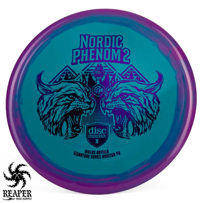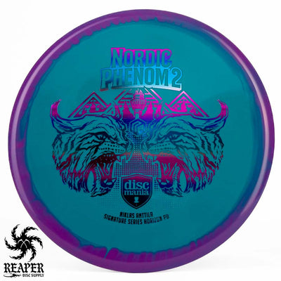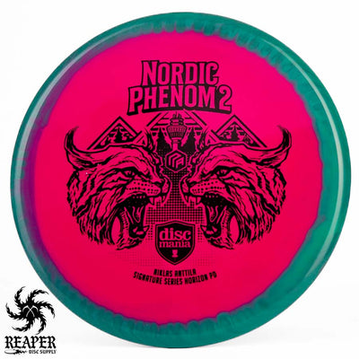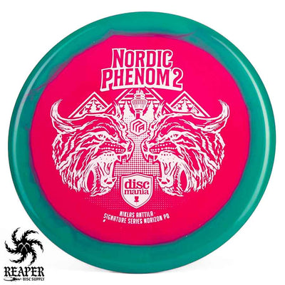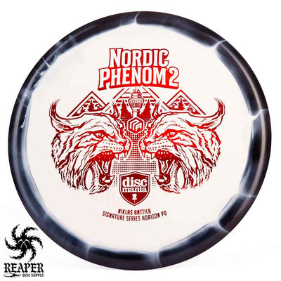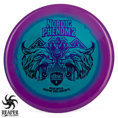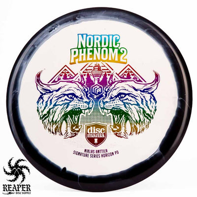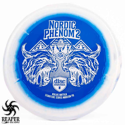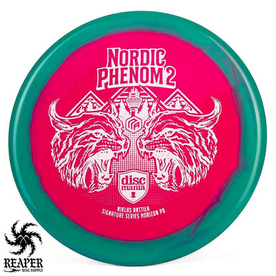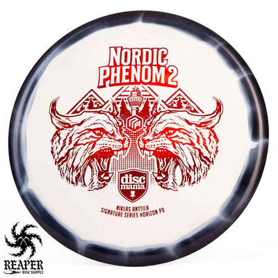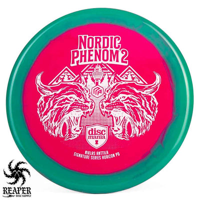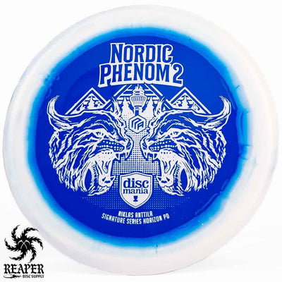 Discover the marvelous Discmania Nordic Phenom 2 Horizon S-Line PD, a signature selection of Niklas Anttila. Crafted from Horizon S-Line plastic, it showcases artful two-tone color variations and an eye-catching Lynx design.