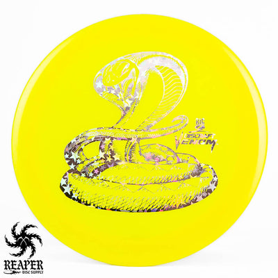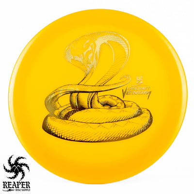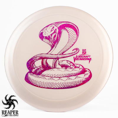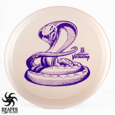 This overstable driver has a dope oversized cobra stamp, and a pearly sheen that looks rad in the sun. Don't let its overstable flight path intimidate you; advanced players will love the predictable flight of the Venom! Whether forehand or backhand, the Discraft Big Z Venom promises you a reliable overstable drive!