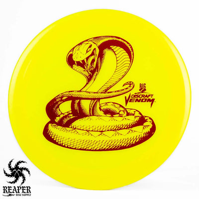 Meet the Discraft Big Z Venom a beefy distance driver that truly packs a punch. Perfect for those with lots of arm speed, the Venom, in its premium Big Z plastic, is spectacular for overhand or forehand throws, even in the wind.