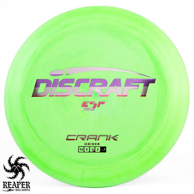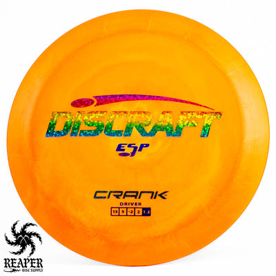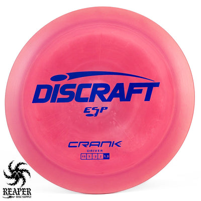 The Discraft ESP Crank is a stable, high speed disc golf distance driver that is great for intermediate players. ESP plastic offers equal parts damage-resistance and grip, making it one of Discraft's premium grades.