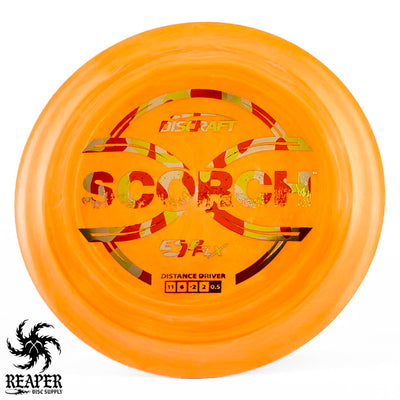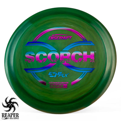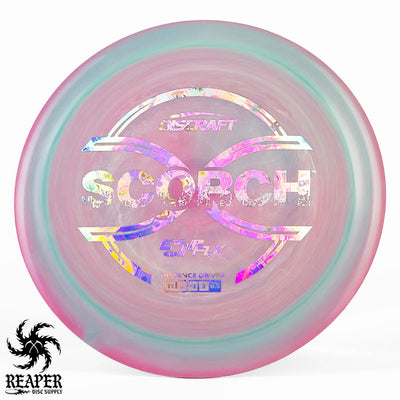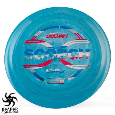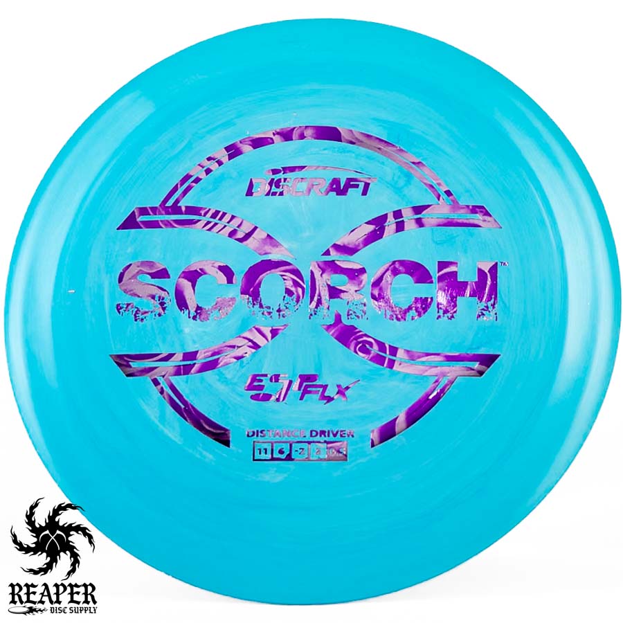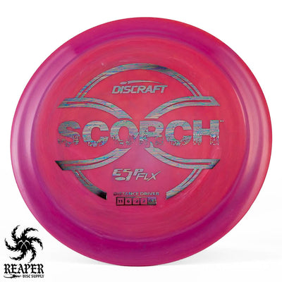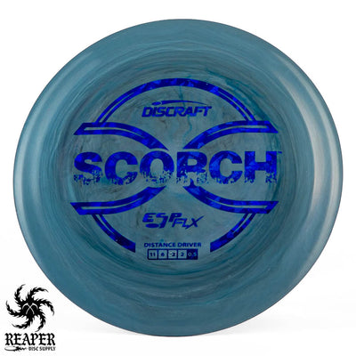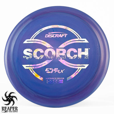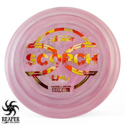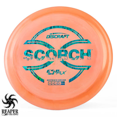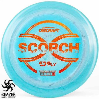 The Discraft ESP FLX Scorch is for any disc golf player looking for an approach-ably stable distance driver designed with grippy, durable plastic. Discraft's ESP FLX combines the incredible durability of FLX with the grip of ESP, plus some added flexibility. With a broad array of swirly colors and stamps, what's not to love about the ESP FLX Scorch?