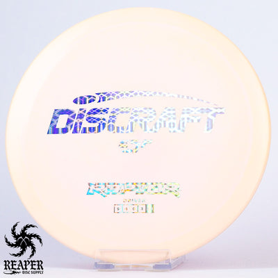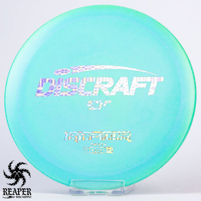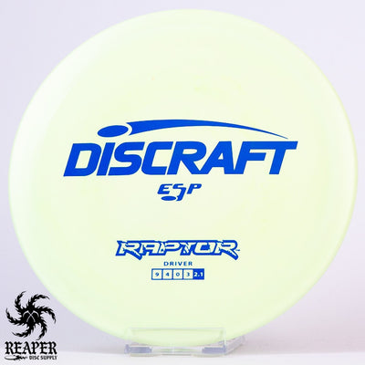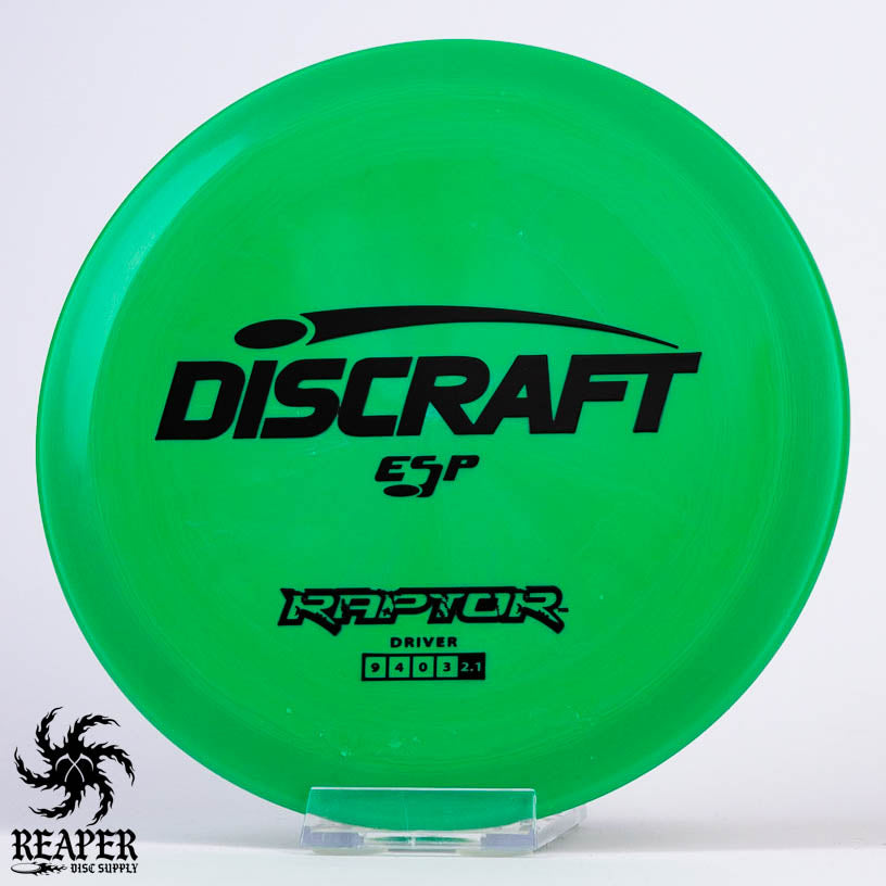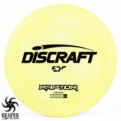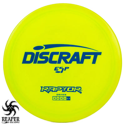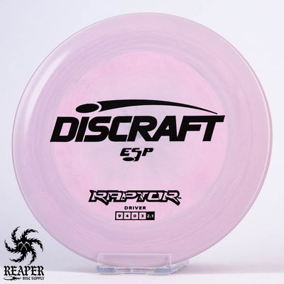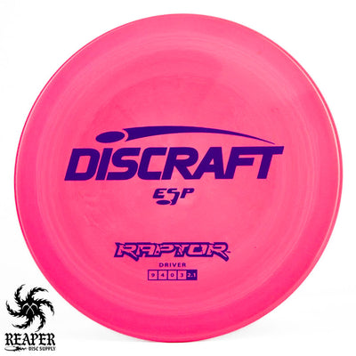 The Discraft ESP Raptor is a workhorse overstable distance driver made with premium durable and grippy plastic. The Raptor is a disc you will see in 99% of Discraft pro's bags. It slices through the wind like butter and provides a predictable, hard-fading flight path so you won't have any surprise skips out of bounds. The overstability of these ESP Raptors also lets forehand dominant players smash this disc as hard as they want without it turning over into the dreaded 'throwler.'