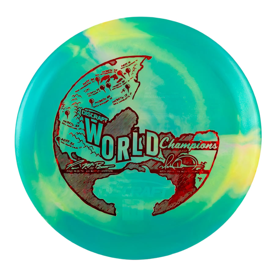 The Discraft Force in ESP Swirl plastic is a limited 'Worlds' edition, offering elite performance and collector's appeal. Designed for advanced players, this overstable distance driver excels in delivering long, controlled drives, even in windy conditions. With its unique swirl patterns and durable plastic, this disc is as visually striking as it is reliable on the course.