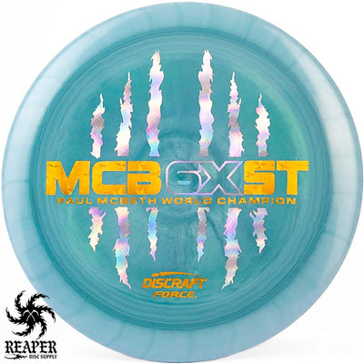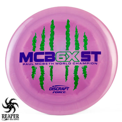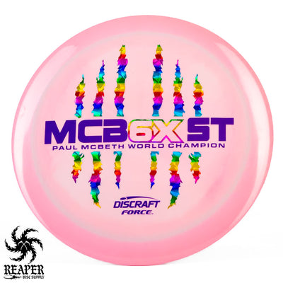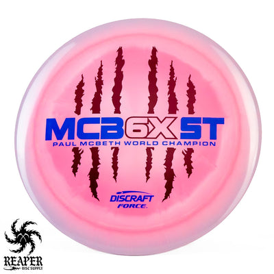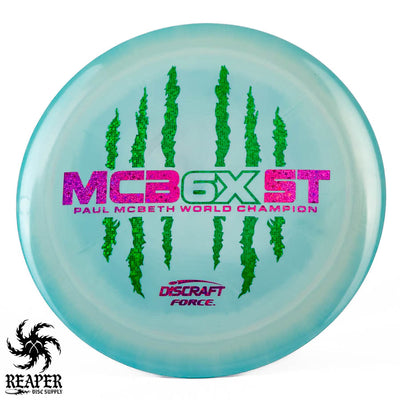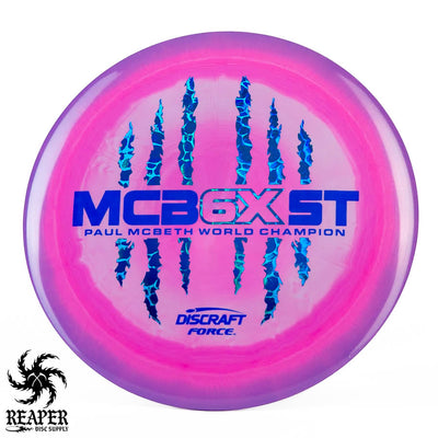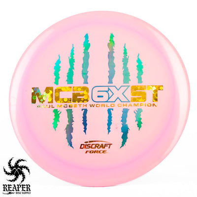 The Paul McBeth 6X McBeast ESP Force has a two-color stamp with unique foil combinations and comes in sweet swirly ESP colors. Limit 1.