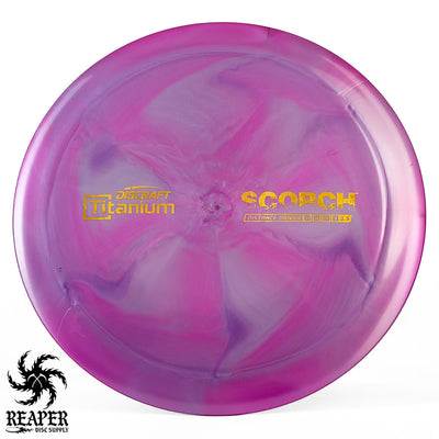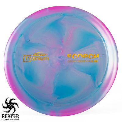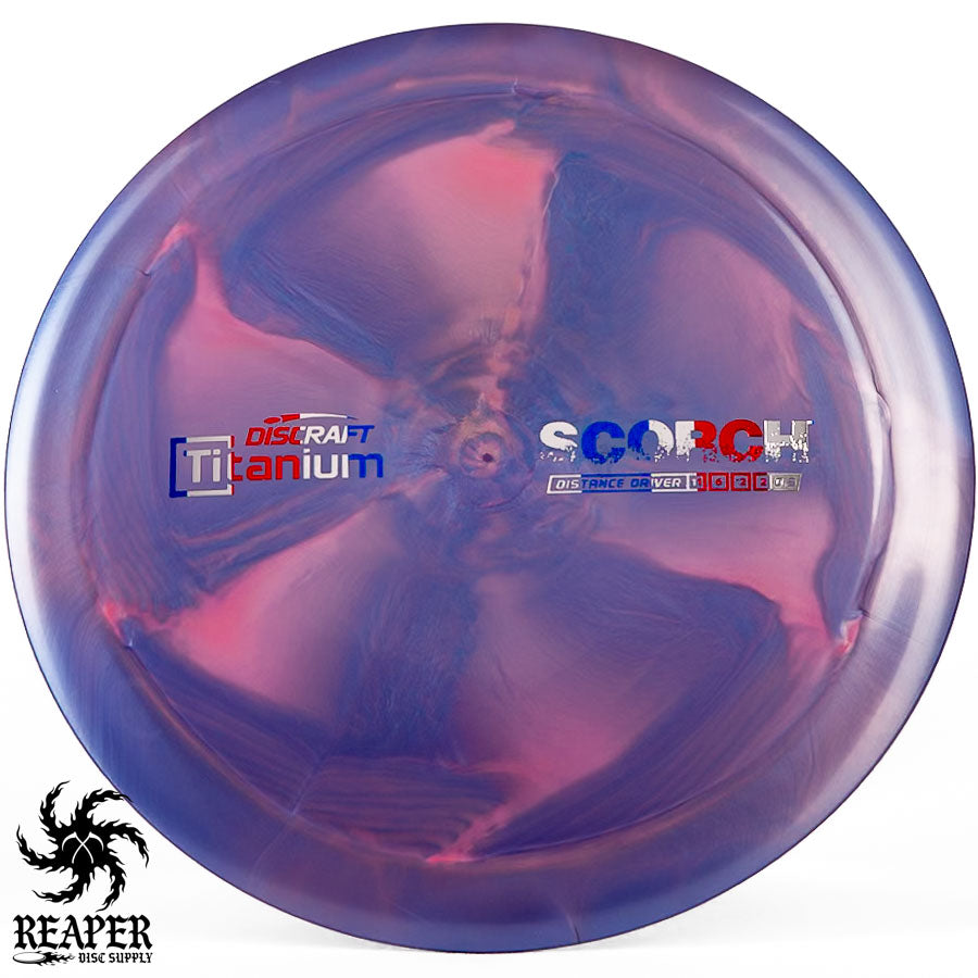 The Discraft Titanium Scorch is a stable distance driver that offers a perfect blend of speed, glide, and control, making it ideal for players seeking to achieve long, accurate throws with ease. Its versatility shines in various shot shapes, including backhand distance drives, flip-to-flat shots, and even powerful forehand throws. The durable Titanium plastic provides excellent grip and maintains the disc's performance over time, making it a reliable choice for both casual rounds and competitive play.