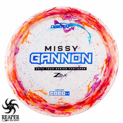 The Discraft Z FLX Thrasher is an understable distance driver, now available in a unique translucent, Jawbreaker-colored plastic that offers more flexibility than traditional Z plastic. This 2024 Tour Series disc features Missy Gannon's signature, with a portion of each sale directly supporting her journey on the Disc Golf Pro Tour. Ideal for achieving long, controlled turnovers and hyzer flips, the Z FLX Thrasher provides excellent grip and durability. Perfect for players seeking maximum distance with minimal effort, this disc combines performance and eco-friendly appeal.