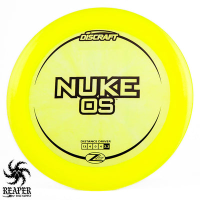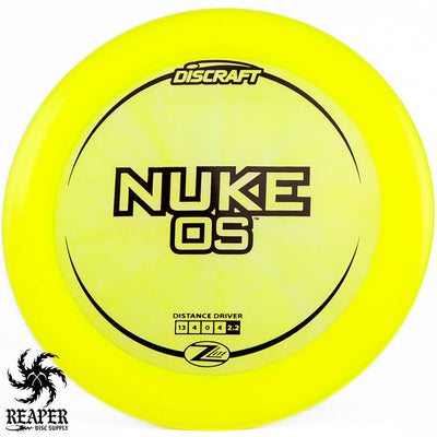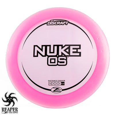 Introducing the Discraft Z Lite Nuke OS. Lightweight, durable, and great for windy conditions, it's crafted for players who need a reliable drive. It has a thick 2.5cm rim and a consistent, sharp overstable fade. Its innovative Z Lite construction ensures longevity and performance, making it suitable for those aiming for greater distance. Pick up a Z Like Nuke OS in weights as low as 140g!