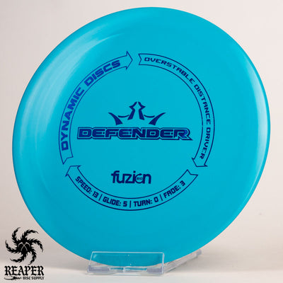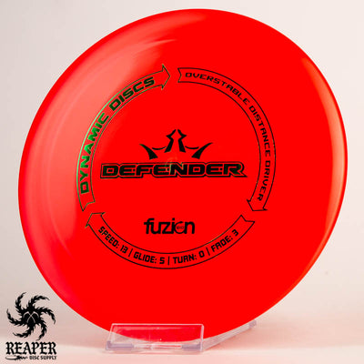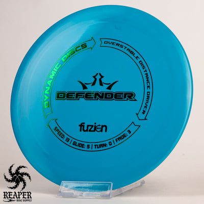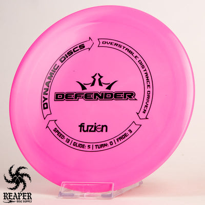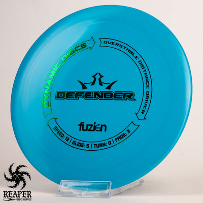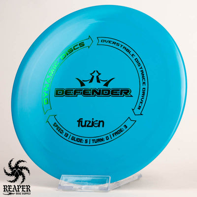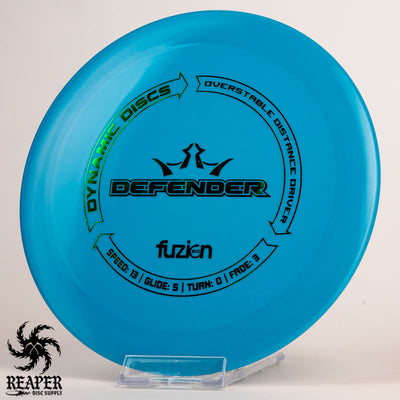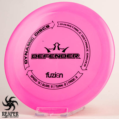 The Dynamic Discs BioFuzion Defender is a high-speed overstable distance driver made with sustainable recycled plastic. BioFuzion is made from a blend of recycled Lucid and Felon plastics that have been melted down to make this plastic.