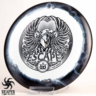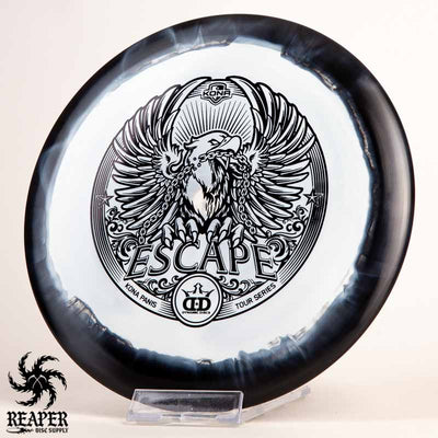 These Dynamic Discs Fuzion Orbit Kona Panis Tour Series Escapes are made with highly grippy plastic and have a sweet eagle stamp! Dynamic Disc's Fuzion Orbit plastic has a gorgeous halo effect and is extremely grippy with a decent amount of tackiness.