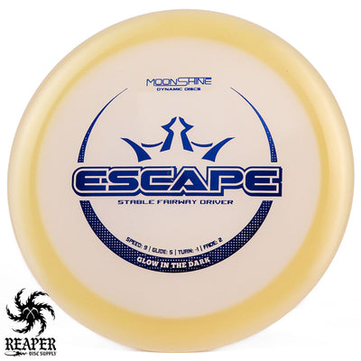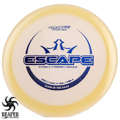 Introducing the Dynamic Discs Glow Lucid Moonshine Escape! This versatile driver is excellent for players of all skill levels, as it provides an easy release and amazing glide.