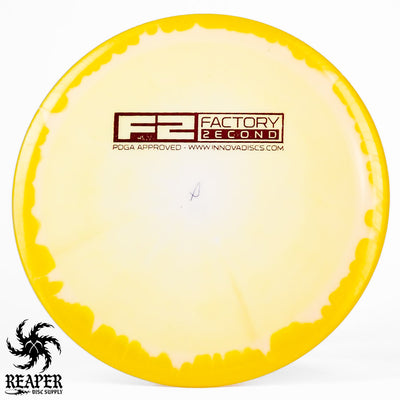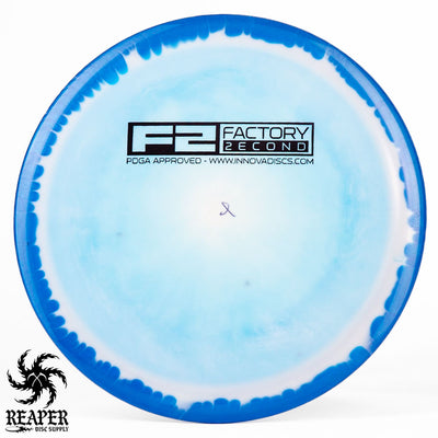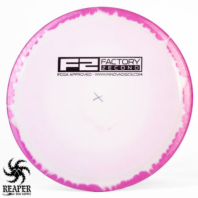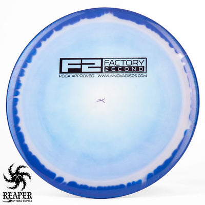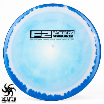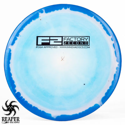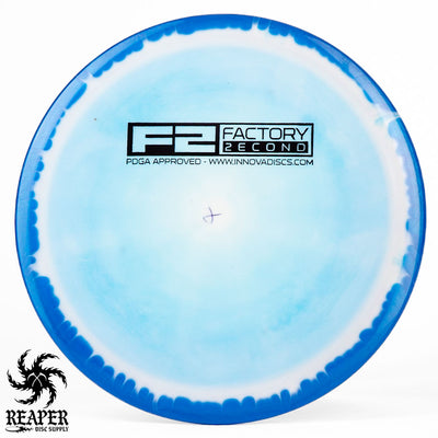 F2 Halo Thunderbirds have minor cosmetic flaws. Some might have ink spots or be miscolored while others may have small divots on the rim/top of the disc. This is how they arrive from Innova's factory and it's what makes them factory second discs.