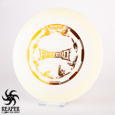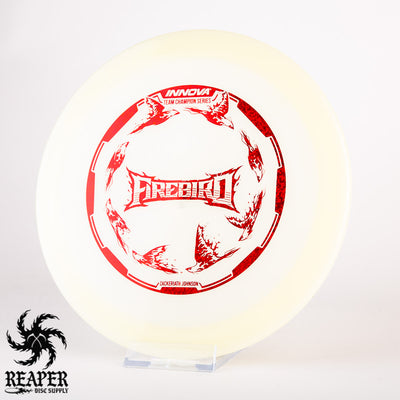 Zackeriath Johnson chose the Champion Glow Firebird as his 2022 Innova Tour Series discs, and they couldn't look cooler! The Glow Firebirds come with a circular bird stamp, and the glow on this plastic is one of the brightest.