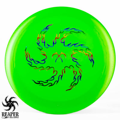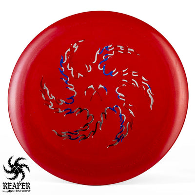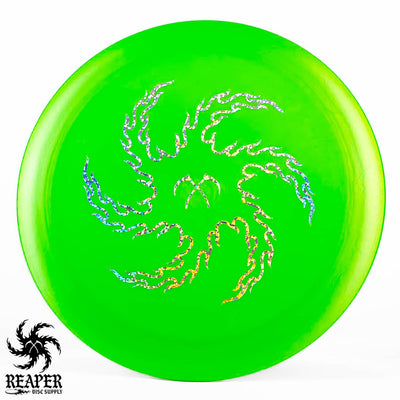 Experience exceptional glide, precision, and grippy premium plastic with the Innova GStar Wraith (Reaper Edition). Crafted from Innova's gummy GStar plastic, the disc not only has a gorgeous metallic sheen but also offers superior flexibility, and has a gummier feel than standard Star plastic.