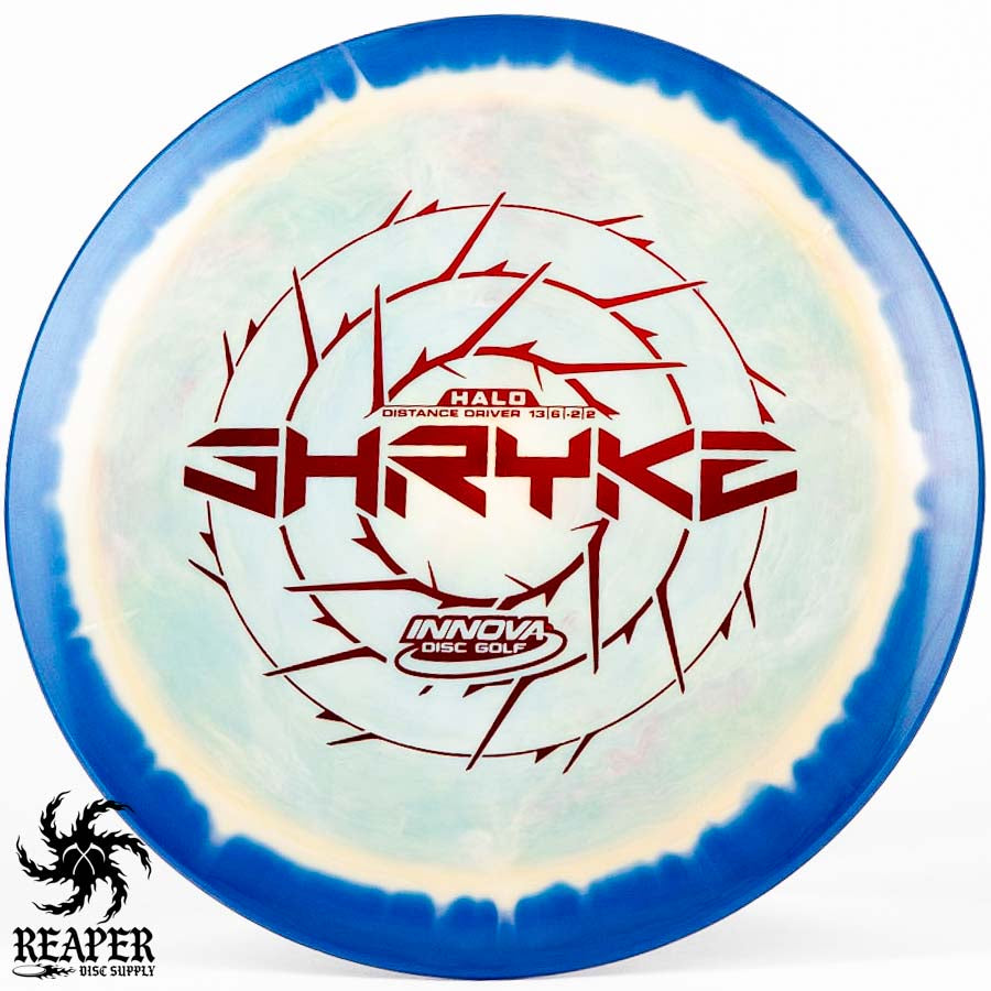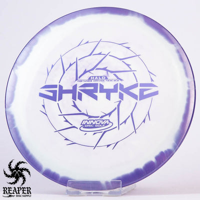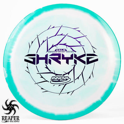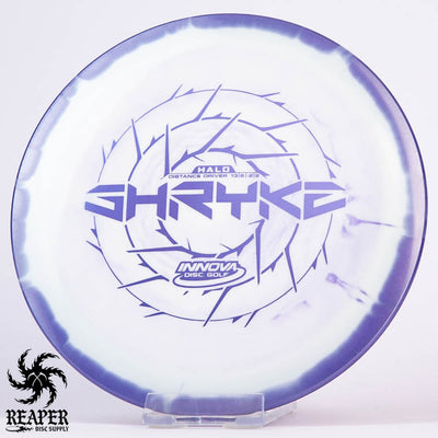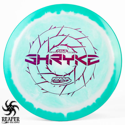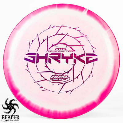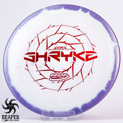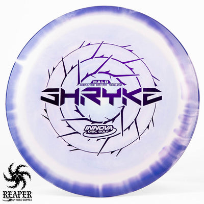 The Innova Halo Star Shryke is a 13-speed stable distance driver with lots of glide and an awesome stamp. The Halo Shryke is a great driver for players with lots of arm speed, and advanced players will be able to easily hyzer flip this disc for max distance shots.