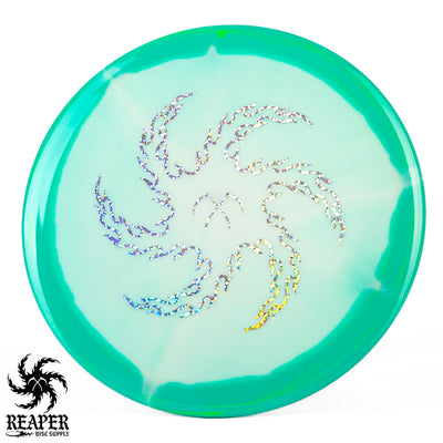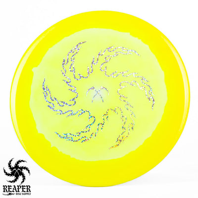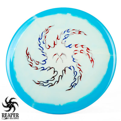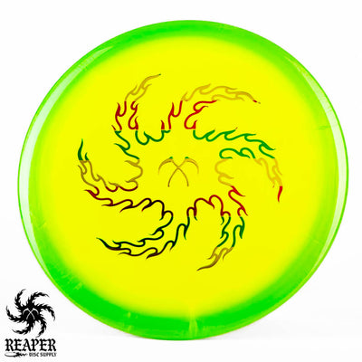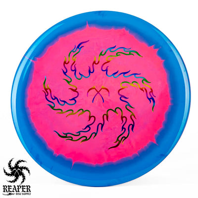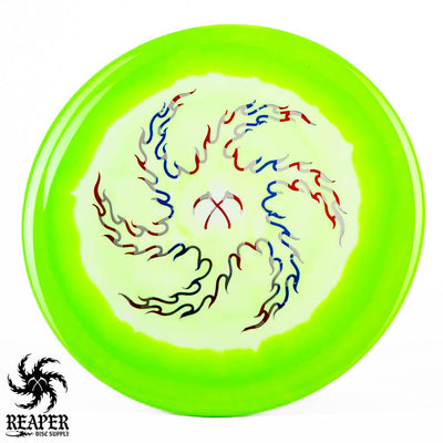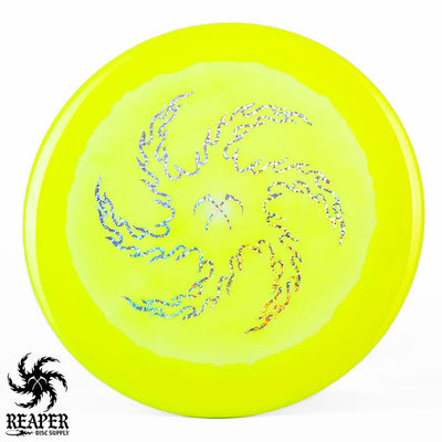 The Innova Halo Star TL3 (Reaper Edition" is a standout fairway driver known for its straight, reliable flights. Innova's Halo Star plastic features a stunning halo effect around the rim, offering both durability and a unique look. This plastic perfectly balances grip and stiffness, ensuring consistent performance. The Halo Star TL3 is ideal for players seeking precise control and a touch of style on the course.