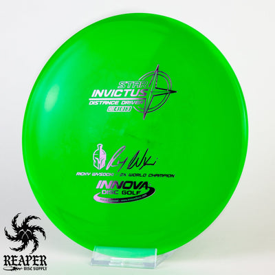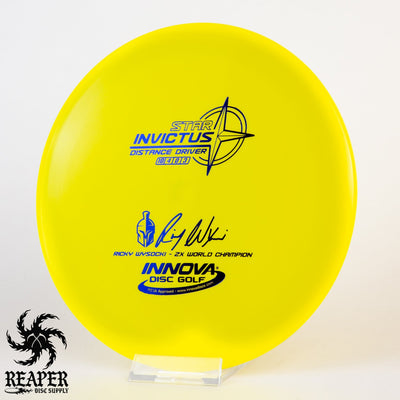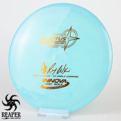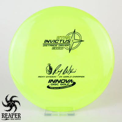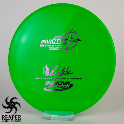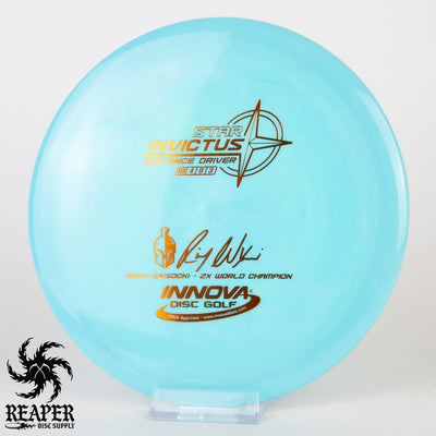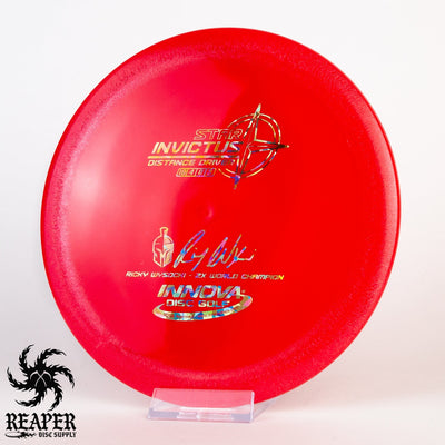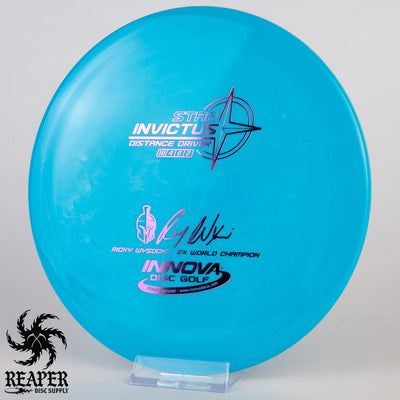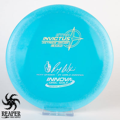 The Innova Star Invictus is a very overstable distance driver that is ready for any weather conditions. This driver is excellent in Star plastic which offers the durability a distance driver needs without sacrificing grippiness.