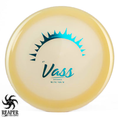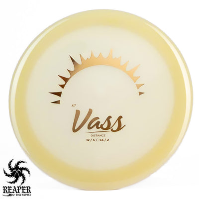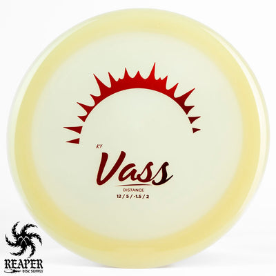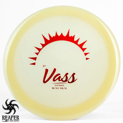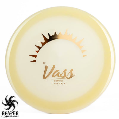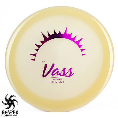 Illuminate the night sky with the Kastaplast K1 Glow Vass, a distance driver designed for majestic S-Curves and tailwind mastery. This disc, glowing with potential, caters to the everyday player, offering substantial glide for those seeking to carve the airways with grace and power.