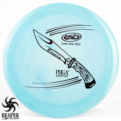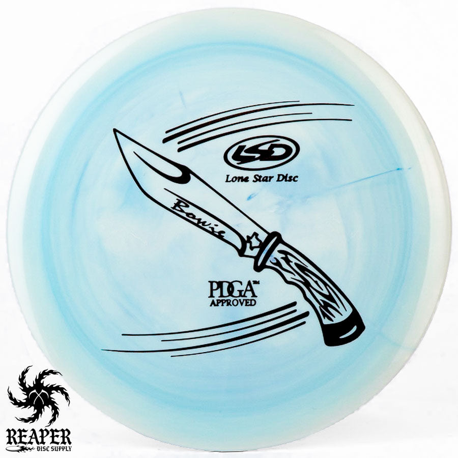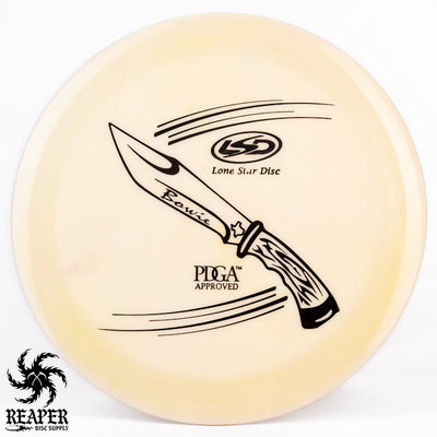 The Lone Star Discs Bowie (Alpha) is a very overstable high-speed distance driver that is best suited for advanced players. Lone Star's Alpha plastic is one of their premium-grade plastics that is highly durable and has great grip as well.