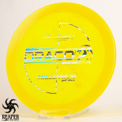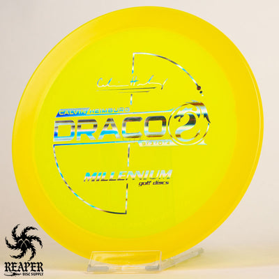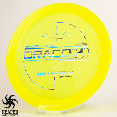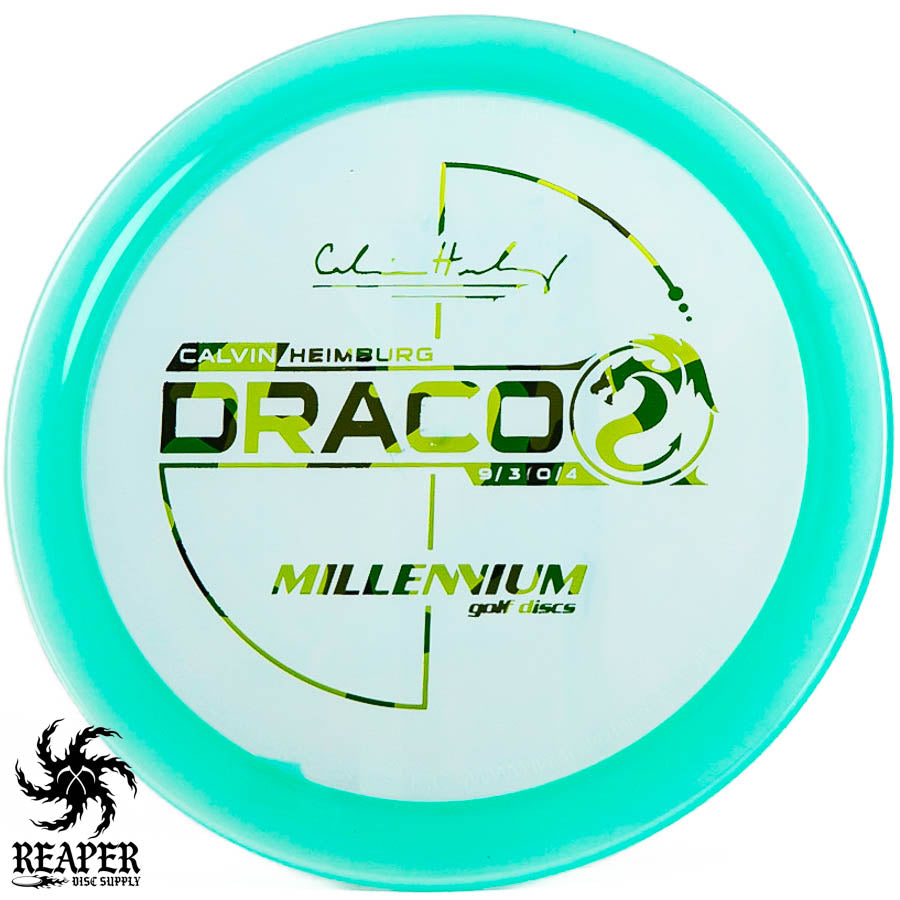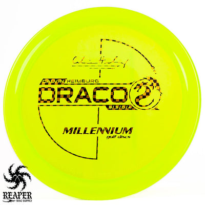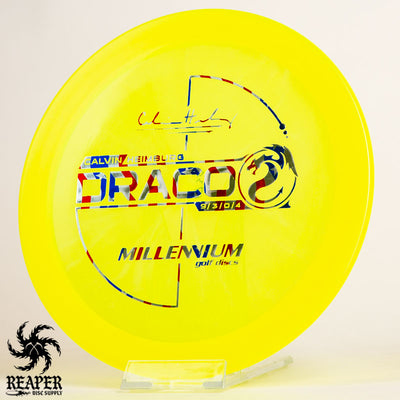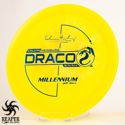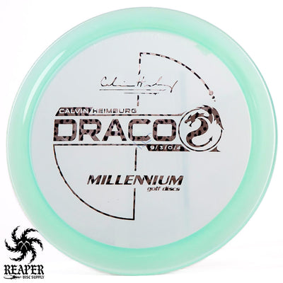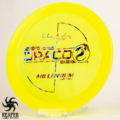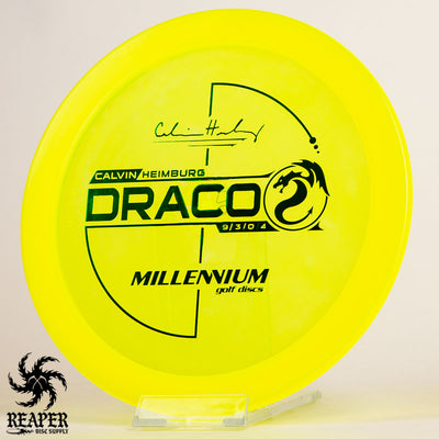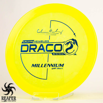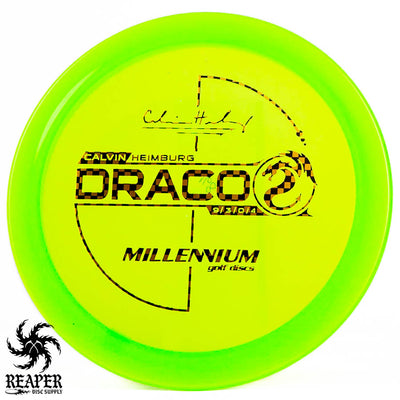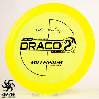 The Millennium Calvin Heimburg Draco is a very overstable distance driver that is reliable in any kind of weather conditions. Commonly used for forehand shots, and fairway drives into strong headwinds; the Draco is a staple in many professional players' bags. This driver is basically a Champion Firebird but even more overstable and slightly more glide/distance.