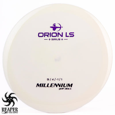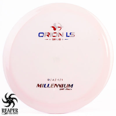 The Millennium Sirius Orion LS is a stable disc golf distance driver. Sirius plastic is the same as Innova's Star plastic which provides phenomenal grip and durability. It is relatively flexible and has a slightly flat top.