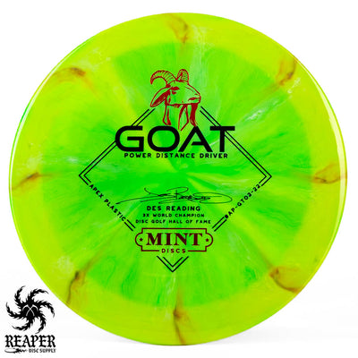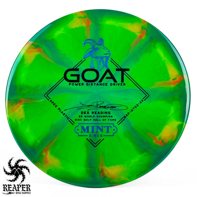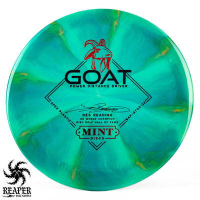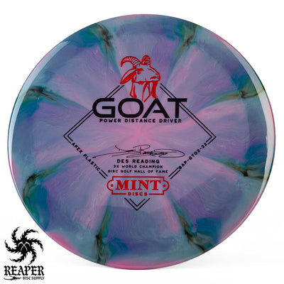 The Mint Discs Goat is an overstable distance driver that is the signature disc of the 3x FPO champion Des Reading.