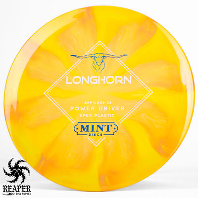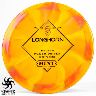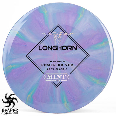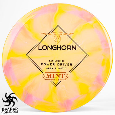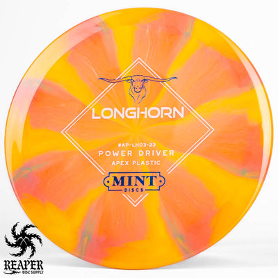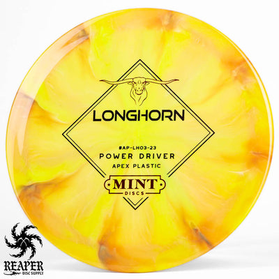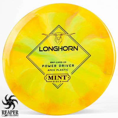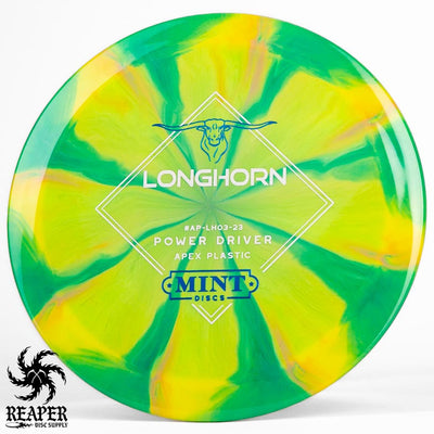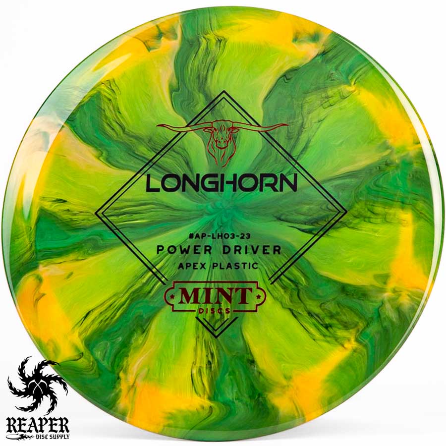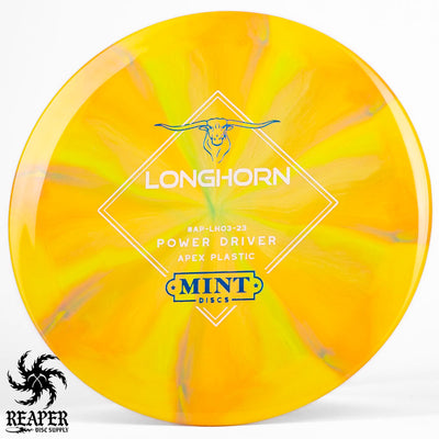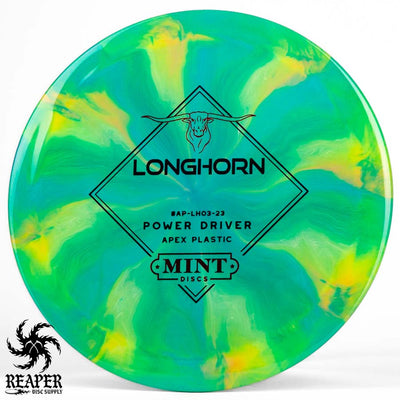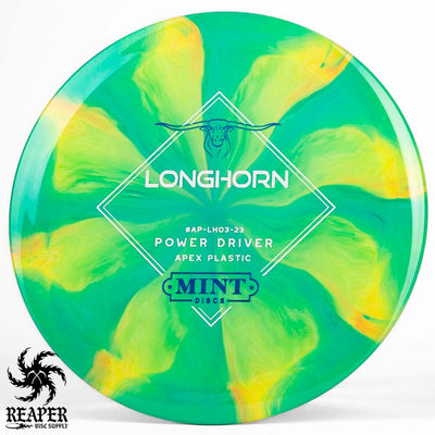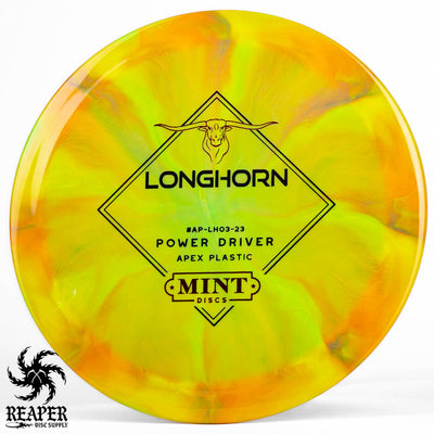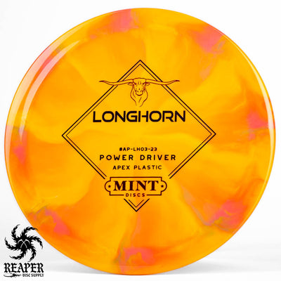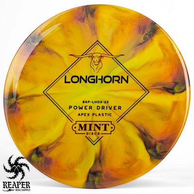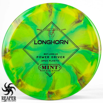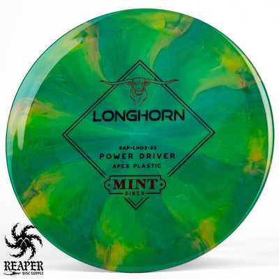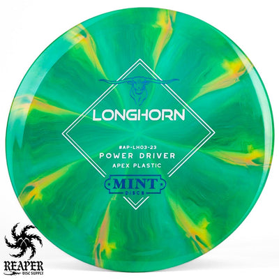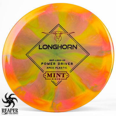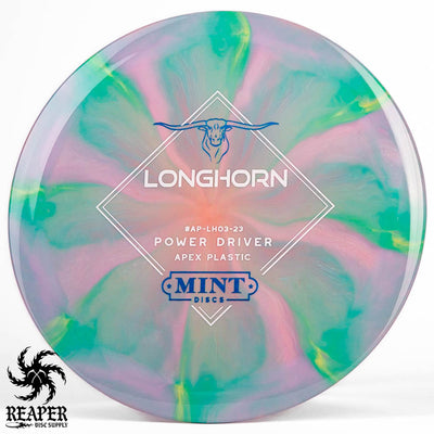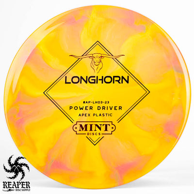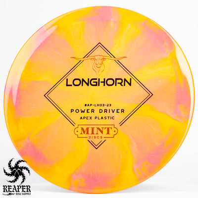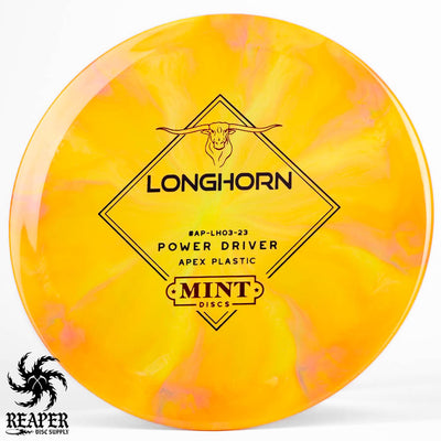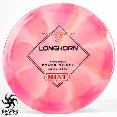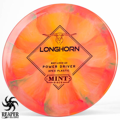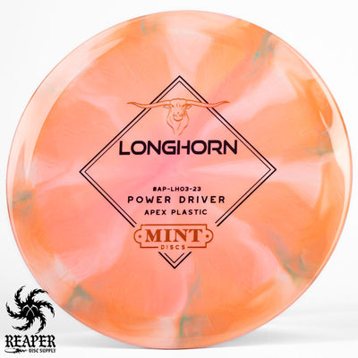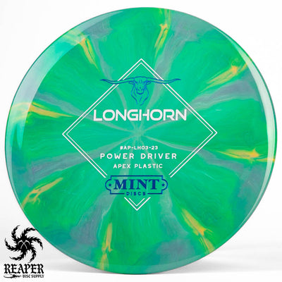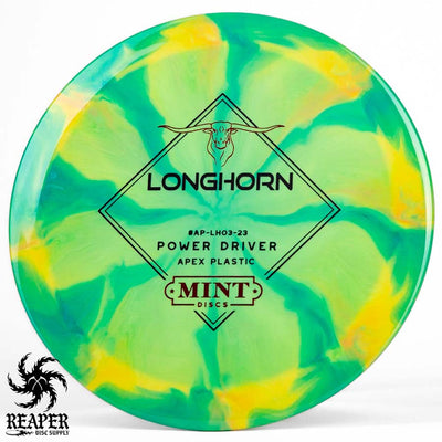 Welcome the Mint Discs Apex Longhorn, a disc that's as fierce as it sounds. Its premium Apex plastic, with insane swirls in this run, offers a killer grip and durability that sticks around longer than that regrettable tattoo. Bonus? It's got extra glide for that satisfying forward carry.
