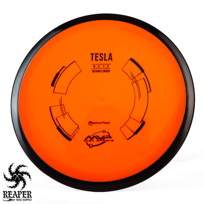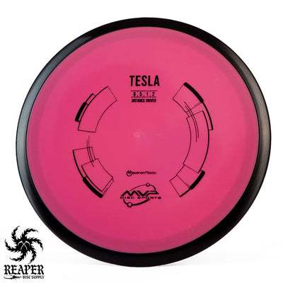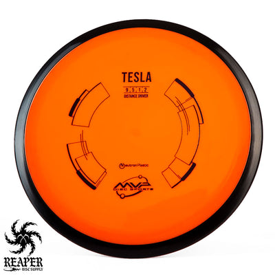 The MVP Neutron Tesla is a stable disc golf driver made with premium grippy plastic. Neutron plastic not only is extremely durable; it also feels great in the hand.