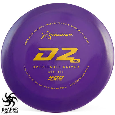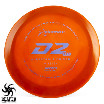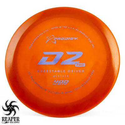The Prodigy 400 D2 Pro is a high-speed, overstable distance driver, crafted from Prodigy's premium 400 plastic. Known for its durability and excellent grip, even in wet conditions, this disc offers a stiff rim and a pronounced "pop" when flexed. Its performance remains consistent across various weather conditions, making it a reliable choice for experienced players