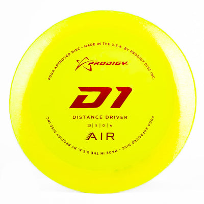 The Prodigy Air D1 is a lightweight overstable distance driver, crafted from Prodigy's premium AIR plastic. This unique blend offers durability, a moderate level of stiffness, and excellent grip. Engineered for similar performance as its heavier runs, it adds extra glide for effortless distance. Perfect for seasoned players seeking easy distance and reliable performance.