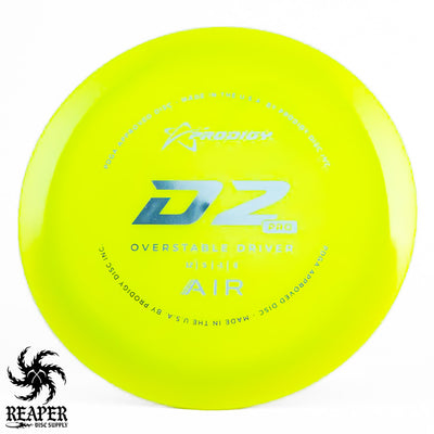 Crafted from Prodigy's innovative AIR Plastic, the Prodigy D2 Pro Air is a distance driver that combines lightweight design with high performance. Despite its lower weight, it maintains the same shot performance as heavier discs, with added glide for effortless distance. It's a versatile disc, suitable for a wide range of playing styles.