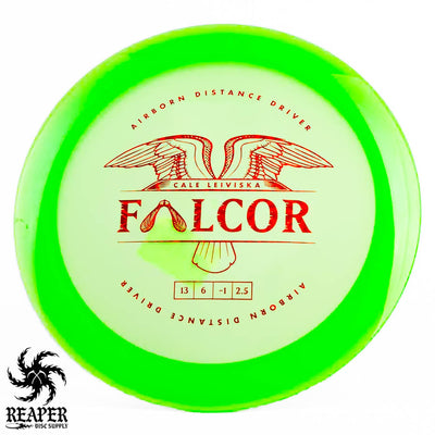 The Cale Leiviska Prodigy Falcor 400 is an overstable distance driver and the first release in Cale's new disc line. These Airborn Falcors have a ton of glide and are made with Prodigy's grippy but durable 400 Plastic.