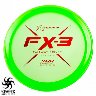 The Prodigy 400 FX-3 is a fairway control driver acclaimed for its enhanced glide and stability, offering a premium grip through durable 400 Plastic. Its design allows for a wide array of shots, catering to different throwing styles and arm strengths while ensuring predictability in flight.