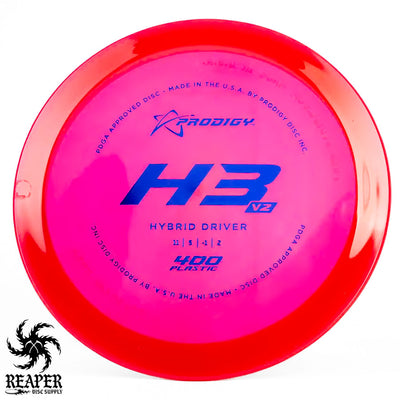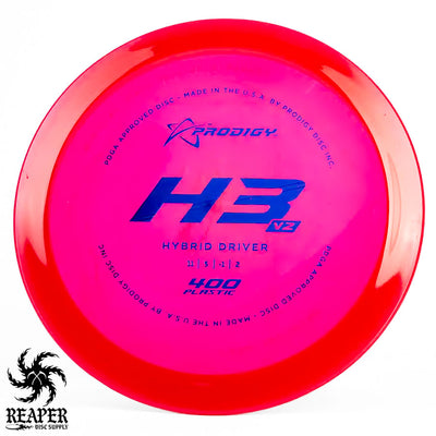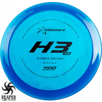 The Prodigy 400 H3 V2 is made with Prodigy's most popular plastic, which is as durable as it is grippy. This hybrid driver flies with finesse, offering a quicker flight and sustained glide for impressive distances. Prodigy's sturdy 400-Line plastic ensures consistent stability, perfect for players seeking a control driver that holds lines with a predictable end-flight fade.