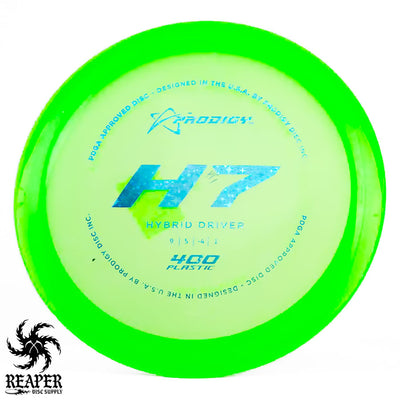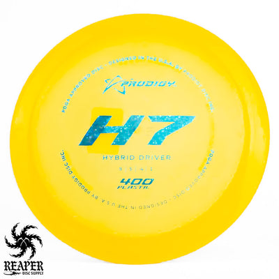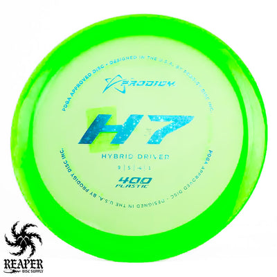 The Prodigy 400 H7 is an understable control driver designed to give players with varying power levels the ability to shape distance shots with ease. In Prodigy's durable 400 plastic, this flippy driver has reliable grip and resilience, making it ideal for achieving controlled anhyzer lines that hold without prematurely fading back.