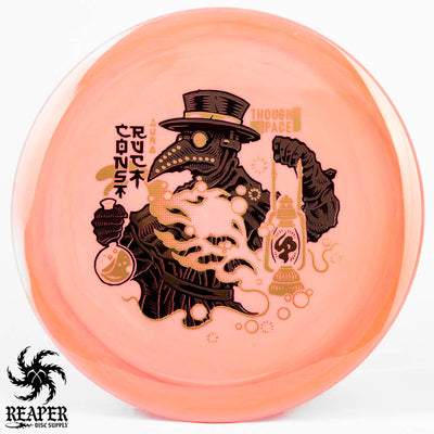These Thought Space Athletics Aura Constructs are made with everyone's favorite TSA plastic (Aura) and have an insanely dope stamp. The Aura Construct is a stable to slightly overstable distance driver that is excellent for intermediate players looking to add some stability and distance to their bag. This disc is also a perfect forehand distance driver for developed beginners and is very comfortable in the hand.