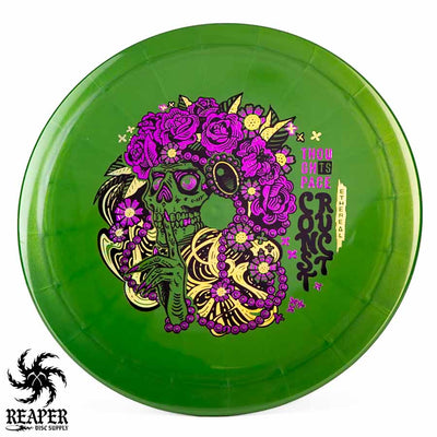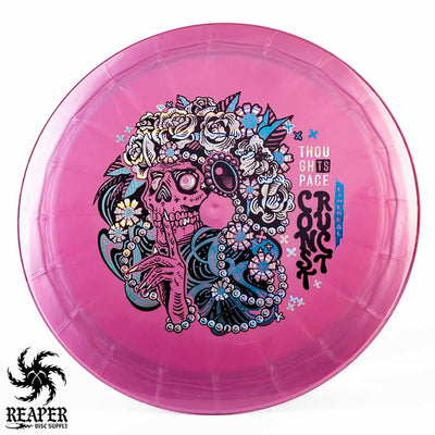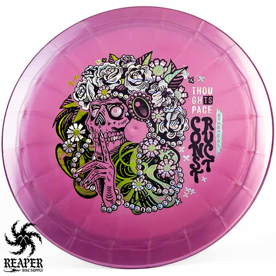 The Thought Space Athletics Ethereal Construct is a stable to slightly overstable distance driver with a dope 3-foil stamp. Made with premium grade shimmery plastic, you won't have to worry about the Construct becoming flippy too fast. As someone with a noodle arm I am quickly turning to this disc as my go-to "overstable" driver, but more advanced players will be able to mold it into a variety of different shot shapes. It is also very comfortable to throw forehand, and can handle a little wind with ease.