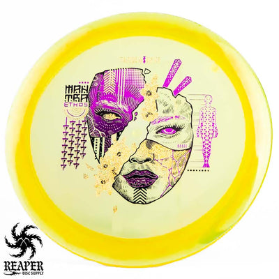 These Thought Space Athletics Ethos Mantras have rad three-color stamps and are made with durable, premium Ethos plastic. Ethos plastic is a hard translucent plastic that will hold its stability better than most others on the market. The Mantra is one of Thought Space's most popular discs, and with a stamp this cool why wouldn't you add one to your bag?