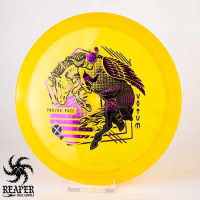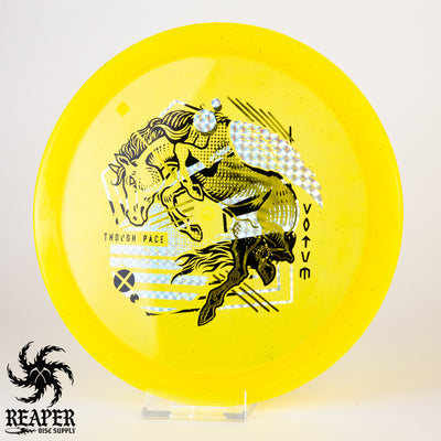 The Thought Space Votum flies similar to a Discraft Undertaker or Innova Halo Star Savant. We tested this disc and found it to be slightly more overstable than its numbers suggest. If you are looking for a versatile fairway/control driver with exceptional plastic, pick up a Votum before they're gone!