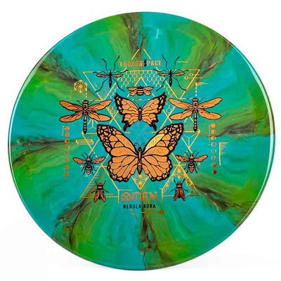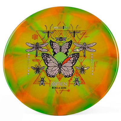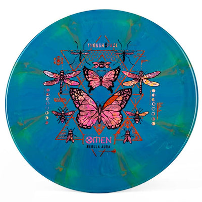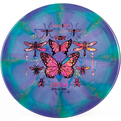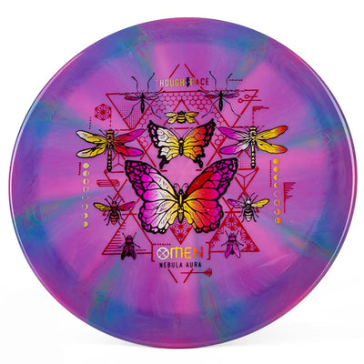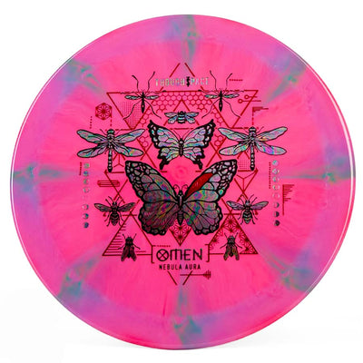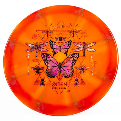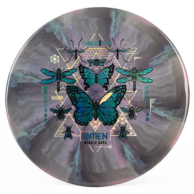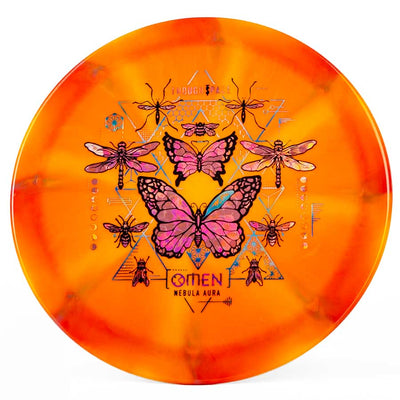The Nebula Aura plastic provides a great feel and durability, ensuring the disc's performance remains consistent. It's perfect for windy conditions, spike hyzers, flex shots, and dependable forehand throws. Its "total meat hook" characteristics are invaluable for navigating obstacles and achieving powerful finishes. The Omen is ideal for advanced players needing a consistent, reliable, overstable driver.