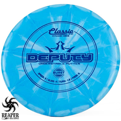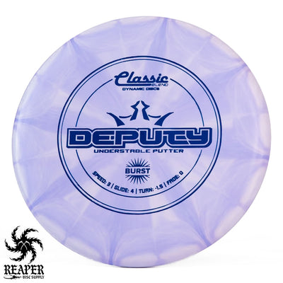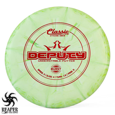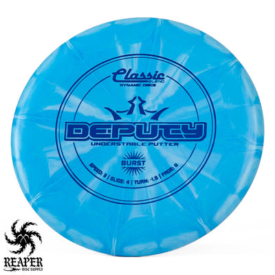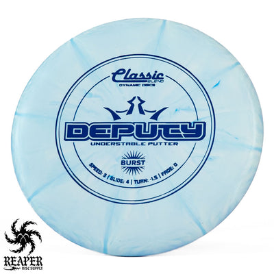 The Classic Burst Deputy is an understable putter that beginners can easily throw. Facing a putt outside of circle one? Pull out the Deputy and it will fly straight at the basket without fading.
