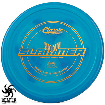 Introducing the Dynamic Discs Classic Sockibomb Slammer - the ultimate throwing putter designed to elevate your approach game.