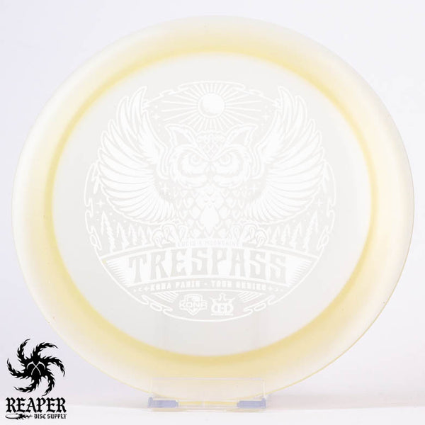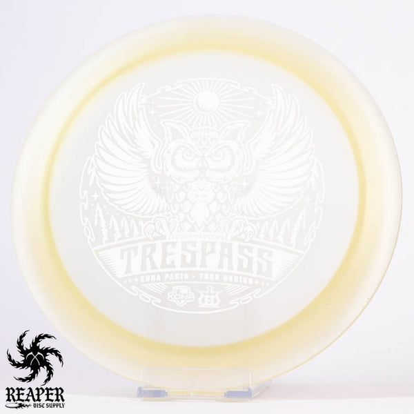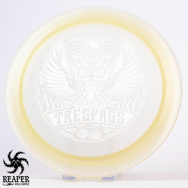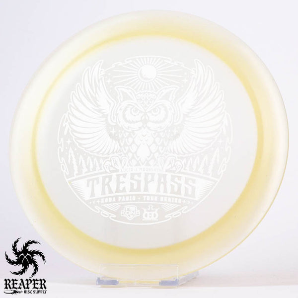 The Dynamic Discs Lucid X Moonshine Kona Panis Trespass is a phenomenal distance driver for intermediate players looking to experiment with faster discs. It flies in a beautiful S-curve and is much easier to throw than a Destroyer. However, the Trespass is not as stable as the flight numbers suggest and can be somewhat flippy for advanced players with fast arms. This disc is absolutely perfect for players with above average mechanics and know how to consistently throw with proper form.