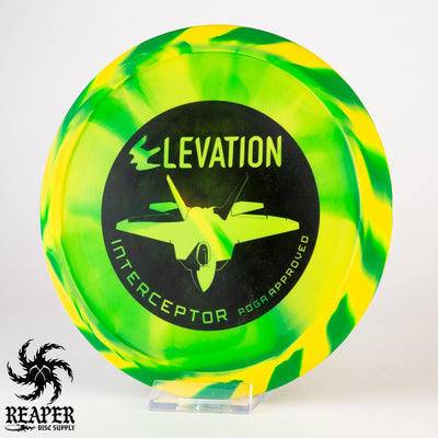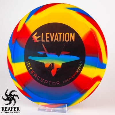 The Elevation Interceptor is one of the most unique overstable midranges that you will ever throw. First off; the rubber plastic is so bendy that you can fold this disc in half like a taco. This is extremely helpful on approach shots, because you don't have to worry about your disc rolling away or skipping.
