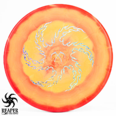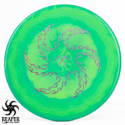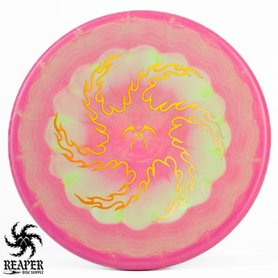 Make a bold move with the Discraft Adam Hammes ESP Zone - Reaper Edition. With a dope ass double stamp - the Adam Hammes Tour Series and our Reaper 'flaming vortex' - this disc shines both visually on the course. Crafted from durable ESP plastic, this overstable putter stands up to the wind, is super dependable with its thick rim, and promises reliable flight paths. Ensure your win on the course with the standout Reaper/Hammes ESP Zone!